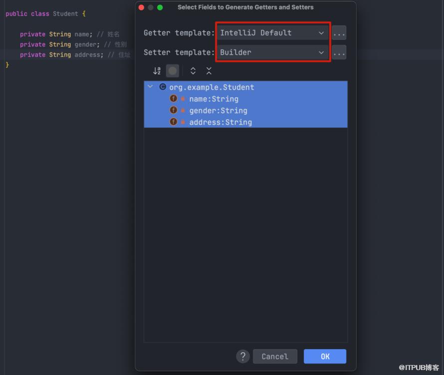 如果有些同学担心 @Accessors 在 lombok.experimental 包不够“稳定”,可以参考 @Accessors 的功能自己写一份即可。如果嫌麻烦可以调用 Generate 快捷键(mac 上 Command +N)选择生成 Getter、Setter ,其中 Setter 选择 Builder 即可实现 set 方法返回 this 的效果,干净纯粹,无其他依赖!