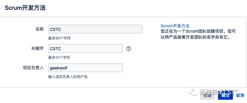 4.2 项目CSTC(迭代项目)用于日常迭代管理,需求评审后,敏捷将评审通过澄清后的管理需求迁移到该项目Backlog。基于该项目创建Sprint迭代计划和管理。实战
